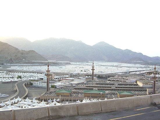 إذا طلعت الشمس يوم عرفة وهو اليوم التاسع من ذي الحجة، سار الحاج من منى إلى عرفة بسكينة وهدوء ذاكراً لله تعالى وملبياً، ويستحب أن ينزل بنمرة إلى الزوال إن تيسر له ذلك، وإلا دخل عرفة ولا حرج، فإذا زالت الشمس صلى الظهر والعصر قصراً وجَمَع بينهما جمع تقديم، ثم يتفرغ بعد ذلك للذكر والدعاء والتضرع إلى الله عز وجل، ويدعو بما أحب رافعاً يديه مستقبلاً القبلة